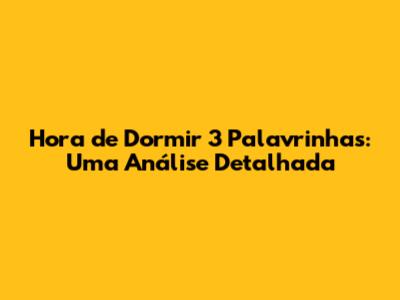 Hora De Dormir 3 Palavrinhas: Uma Análise Completa