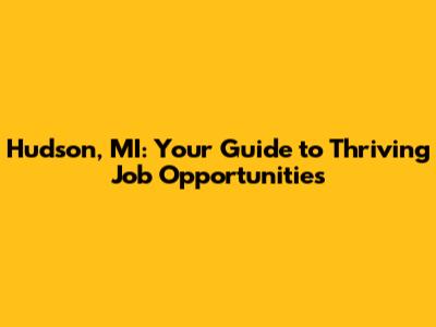 Hudson, MI: Your Guide To Thriving Job Opportunities