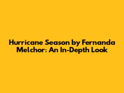 Hurricane Season By Fernanda Melchor: An In-Depth Look