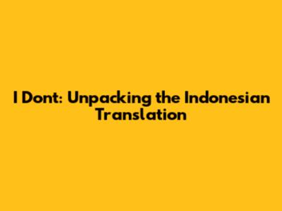 I Don't: What Is The Indonesian Translation?