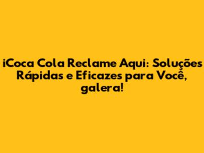 ICoca Cola Reclame Aqui: Soluções Rápidas