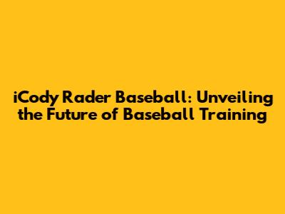 ICody Rader Baseball: Unveiling The Future Of Baseball Training