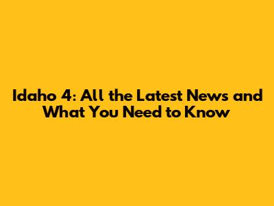 Idaho 4: Latest News & Updates