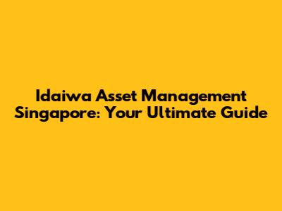 Hey everyone, let's dive into Idaiwa Asset Management Singapore! This article will be your go-to guide, covering everything you need to know about this key player in the Singaporean financial landscape. We'll break down what Idaiwa does, its investment strategies, and why it might be a good fit for your financial goals. So, grab a coffee, and let's get started, guys!