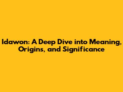 Idawon: Unveiling Meaning, Origins, And Significance