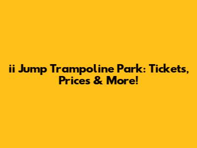 Hey guys! Are you looking for a super fun way to burn some energy and have a blast? Then you absolutely HAVE to check out ii Jump Trampoline Park! It’s an awesome place packed with trampolines, games, and activities that are perfect for kids, teens, and even adults (yes, even you!). In this article, we're diving into everything you need to know about ii Jump, from ticket prices and available activities to party options and safety guidelines. So, buckle up and get ready to jump into the fun!