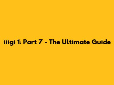 Iiigi 1: Part 7 - The Ultimate Guide