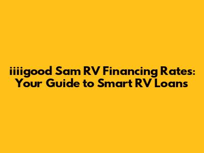 Iiiigood Sam RV Financing Rates: Your Guide To Smart RV Loans
