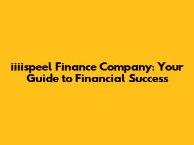 Iiiispeel Finance Company: Your Guide To Financial Success