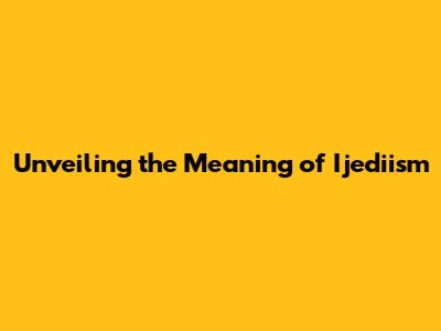Ijediism: A Deep Dive Into The Meaning