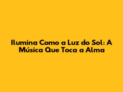 Ilumina Como A Luz Do Sol: A Música Que Toca A Alma