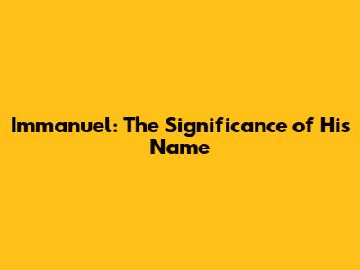 Immanuel: The Significance Of His Name