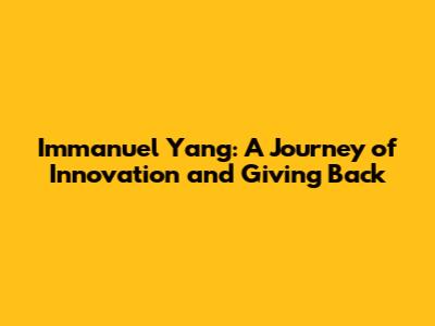 Immanuel Yang: From Tech Pioneer To Philanthropic Leader