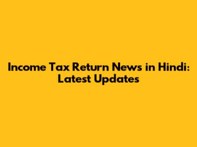 Income Tax Return News In Hindi: Latest Updates