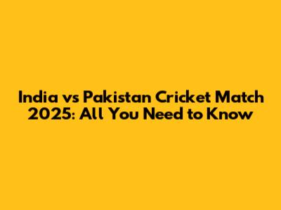 India Vs Pakistan Cricket Match 2025: All You Need To Know