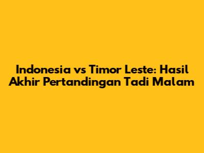 Indonesia Vs Timor Leste: Hasil Pertandingan Tadi Malam