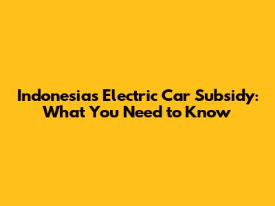 Indonesia's Electric Car Subsidy: What You Need To Know