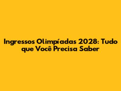 Como Comprar Ingressos para as Olimpíadas de 2028
