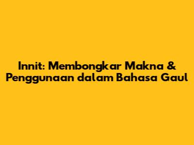 Innit, sebuah kata gaul yang kerap berseliweran di percakapan sehari-hari, khususnya di kalangan anak muda. Tapi, apa sebenarnya innit itu? Jangan khawatir, guys! Artikel ini akan mengupas tuntas tentang makna, asal-usul, serta contoh penggunaan innit dalam bahasa gaul, sehingga kamu nggak ketinggalan zaman dan bisa ikut nimbrung dalam obrolan seru.