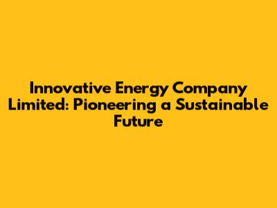 The Impact of Innovative Energy Company Limited: A Brighter Future