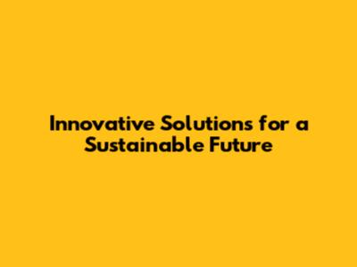 Innovative Solutions For A Sustainable Future