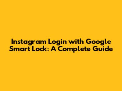 Instagram Login With Google Smart Lock: A Complete Guide