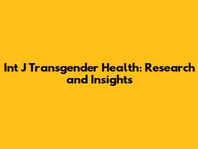 Int J Transgender Health: Research And Insights