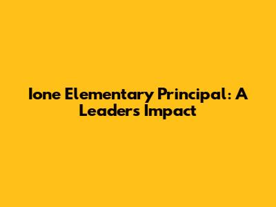 Ione Elementary Principal: A Leader's Impact