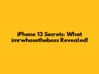 IPhone 13 Secrets: What Imrwhosetheboss Revealed!