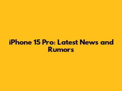 IPhone 15 Pro: Latest News And Rumors