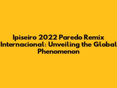 Hey music lovers, let's dive into the electrifying world of the Ipiseiro 2022 Paredo Remix Internacional! This isn't just a song; it's a global phenomenon, a sonic tapestry woven with threads from different cultures and rhythms. You know how some tracks just grab you from the first beat? Well, this one's got that undeniable energy, the kind that makes you want to move, to feel, to connect with the music on a deeper level. This article breaks down everything from its origins to its impact, and its status as a chart-topping hit.