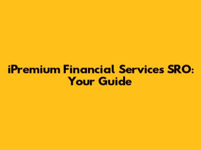 Let's dive into iPremium Financial Services SRO, guys! In this article, we're breaking down everything you need to know about them. We'll explore what they do, how they operate, and why they might be a company worth checking out. Whether you're an experienced investor or just starting to dip your toes into the world of finance, understanding different financial service providers is super important. So, let's get started and uncover the ins and outs of iPremium Financial Services SRO.