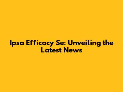 Ipsa Efficacy Se: Unveiling The Latest News