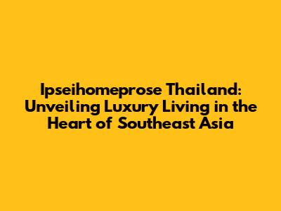 Ipseihomeprose Thailand: Your Gateway To Luxury Living