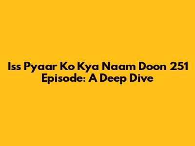 Hey everyone, let's dive into the Iss Pyaar Ko Kya Naam Doon 251 episode. This episode was a rollercoaster of emotions, full of drama, romance, and those nail-biting moments that keep us all hooked. I'm going to break down everything that happened, offering a detailed recap, some of my thoughts, and a little bit of analysis for you guys. So, buckle up, because we're about to revisit this iconic episode, and explore all the juicy details. This show has a special place in our hearts. The episode 251 is a turning point, and many fans consider it a must-watch! The show's storytelling really shines during moments like these. If you are new to this episode or want a refresher, you're in the right place.