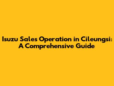 Isuzu Sales Operation In Cileungsi: A Comprehensive Guide