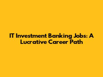 IT Investment Banking Jobs: A Lucrative Career Path