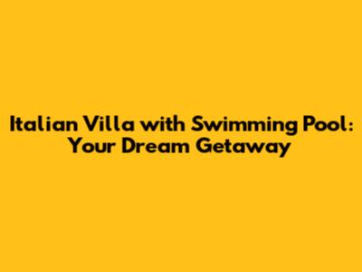 Italian Villa With Pool: Your Dream Getaway
