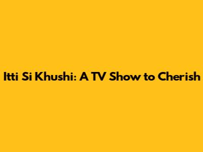 Hey guys! Let's dive into the world of Itti Si Khushi, a TV show that has captured hearts and left a lasting impression. This show, filled with relatable characters, heartwarming stories, and memorable moments, has become a cherished part of many viewers' lives. In this article, we'll explore what made Itti Si Khushi so special, its impact, and why it continues to resonate with audiences even today. Get ready to reminisce and maybe even discover a new favorite! The main keywords here are Itti Si Khushi TV show, which we will discuss to help readers understand the important aspects of this TV show, as well as the important impact it has on the audience. We'll look at the plot, characters, and memorable moments that made this show a success. If you're a long-time fan or just curious about what made Itti Si Khushi so beloved, read on! You're in for a treat!