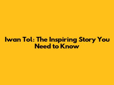 Iwan Tol: The Inspiring Story You Need To Know