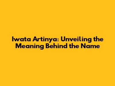 Iwata Artinya: Unveiling The Meaning Behind The Name
