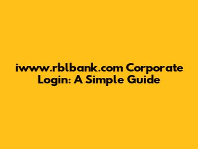 Iwww.rblbank.com Corporate Login: A Simple Guide