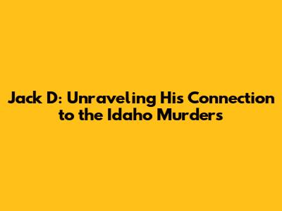 Without official confirmation from law enforcement, it's impossible to definitively state Jack D's connection to the Idaho murders. Relying on rumors and unverified sources can lead to the spread of misinformation and potentially harm innocent individuals. It's always best to wait for official updates and announcements from the authorities before drawing any conclusions about Jack D's role in the case.