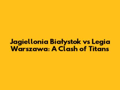 Hey sports fans! Get ready to dive deep into one of the most exciting matchups in Polish football: Jagiellonia Białystok vs. Legia Warszawa. This isn't just any game; it's a clash of titans, a battle of wills, and a showcase of some seriously impressive football skills. Whether you're a die-hard fan or just starting to follow the Ekstraklasa, this analysis will give you everything you need to know about these two powerhouse teams. We'll be covering their histories, their current forms, key players, and, of course, some predictions for their upcoming face-offs. So, grab your snacks, settle in, and let's get started!