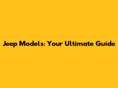 Jeep Models: Your Ultimate Guide