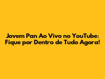 Jovem Pan Ao Vivo: Assista Youtube Agora!