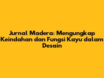Jurnal Madera: Sumber Inspirasi dan Informasi