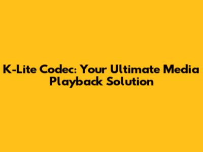 K-Lite Codec: Your Ultimate Media Playback Solution