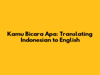 Kamu Bicara Apa: Translating Indonesian To English