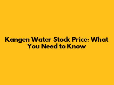 Kangen Water Stock Price: What You Need To Know